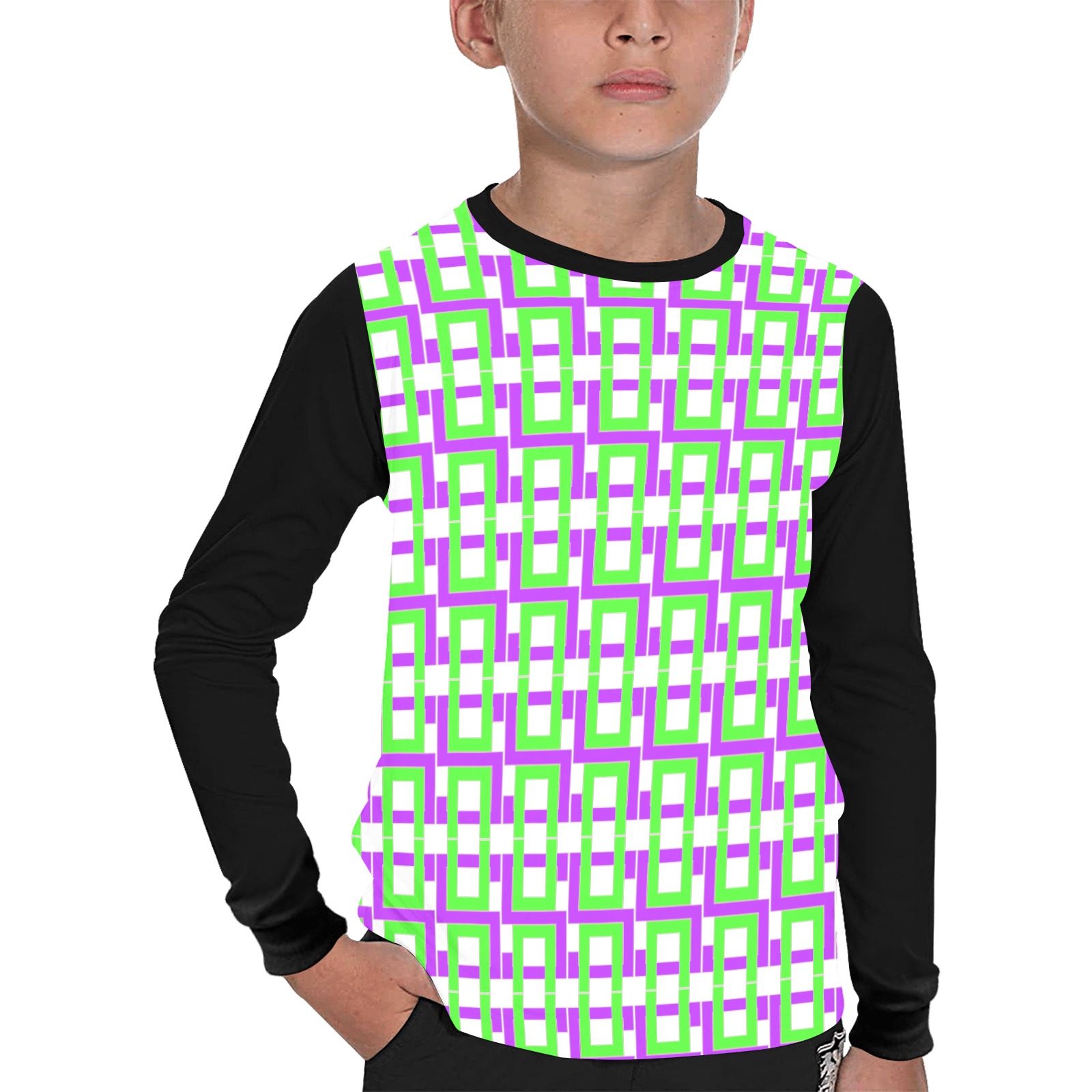 - Striking Symmetry-Inspired Design: A geometric pattern in bright green, purple, and white brings a fresh, playful aesthetic to your child’s wardrobe.