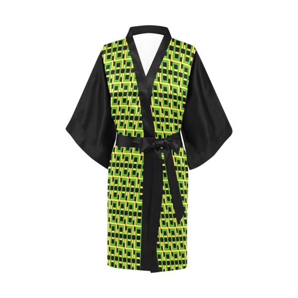 The bold green, black, and gold palette, drawn from the Jamaican flag, adds a touch of cultural vibrancy, making this robe a standout piece for your wardrobe, whether you’re lounging at home or styling it as a statement outerwear piece.