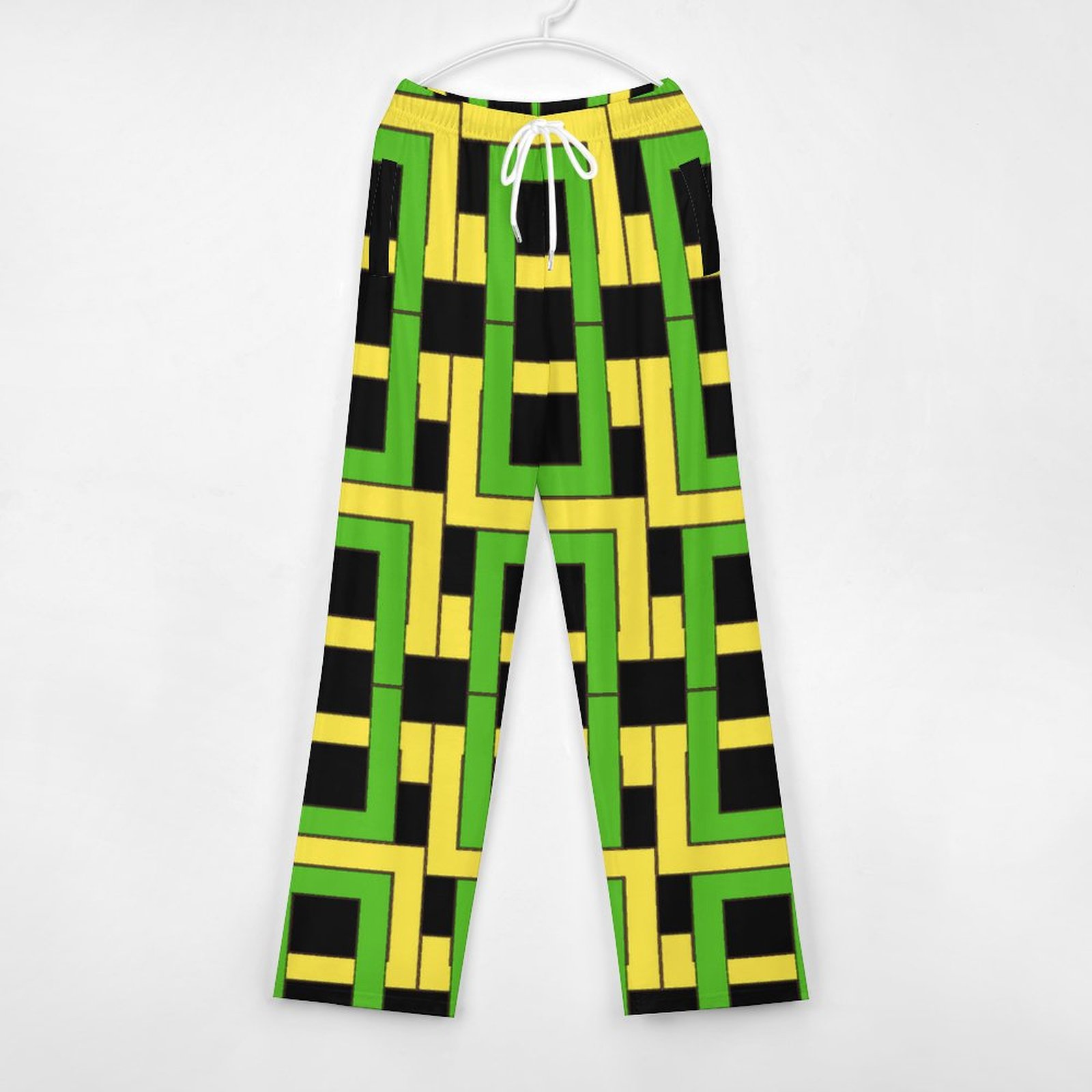 The bold black, green, and yellow palette draws inspiration from the Jamaican flag, exuding vibrancy, energy, and cultural pride. With a relaxed fit, elastic waistband, and adjustable drawstring, these lounge pants offer versatile wearability, perfect for lounging at home, casual streetwear, or layering over activewear.