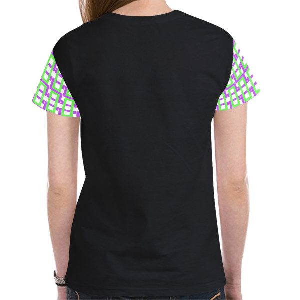 - This t-shirt embraces the beauty of symmetry while celebrating the uniqueness within it. The vivid patterns on the sleeves and logo pop beautifully against the black canvas, making it an artistic and youthful addition to any wardrobe.